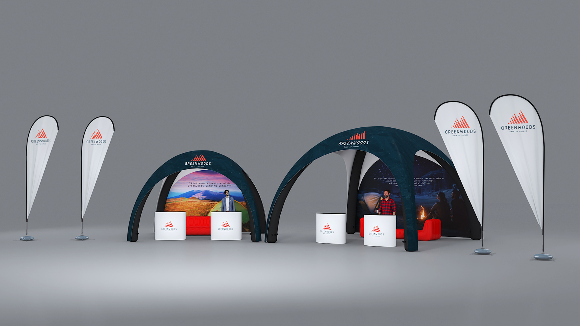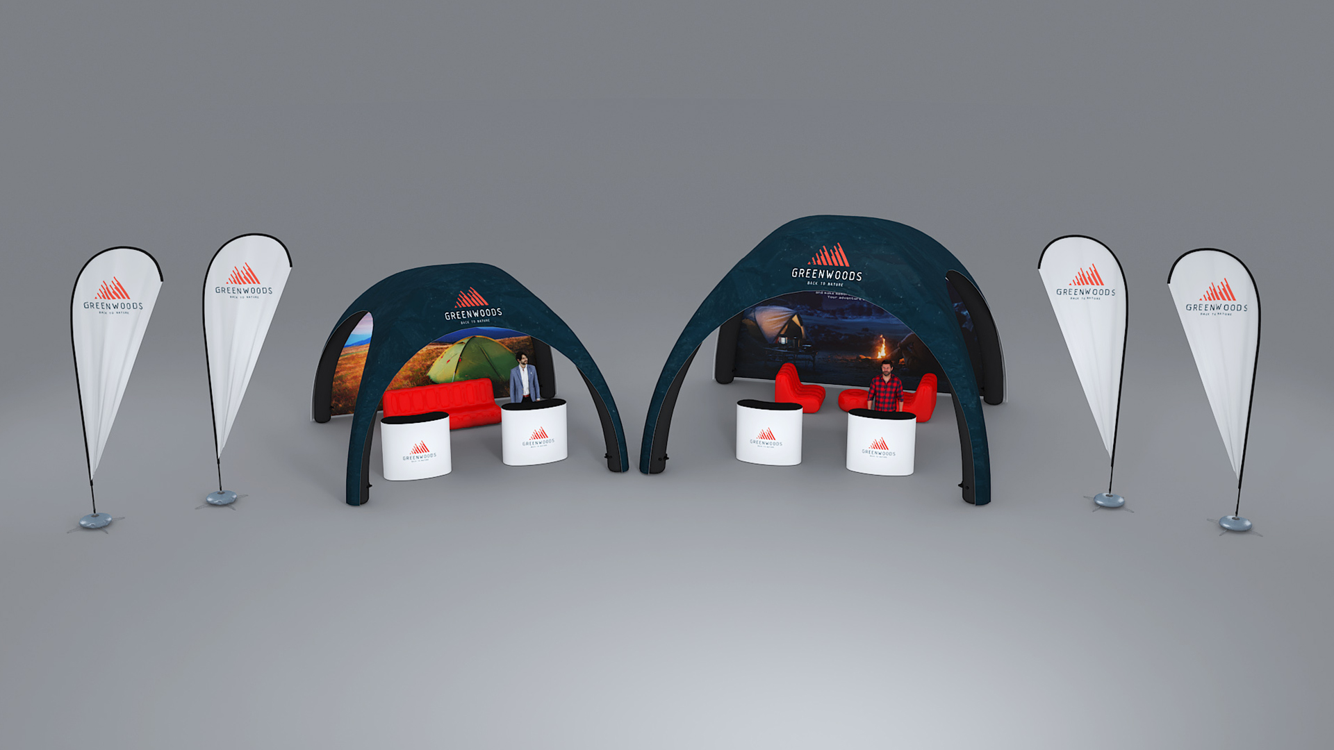 - 1x in3-dop-5x5 Aufblasbare Zeltstruktur 5x5 Meter mit bedrucktem Dach