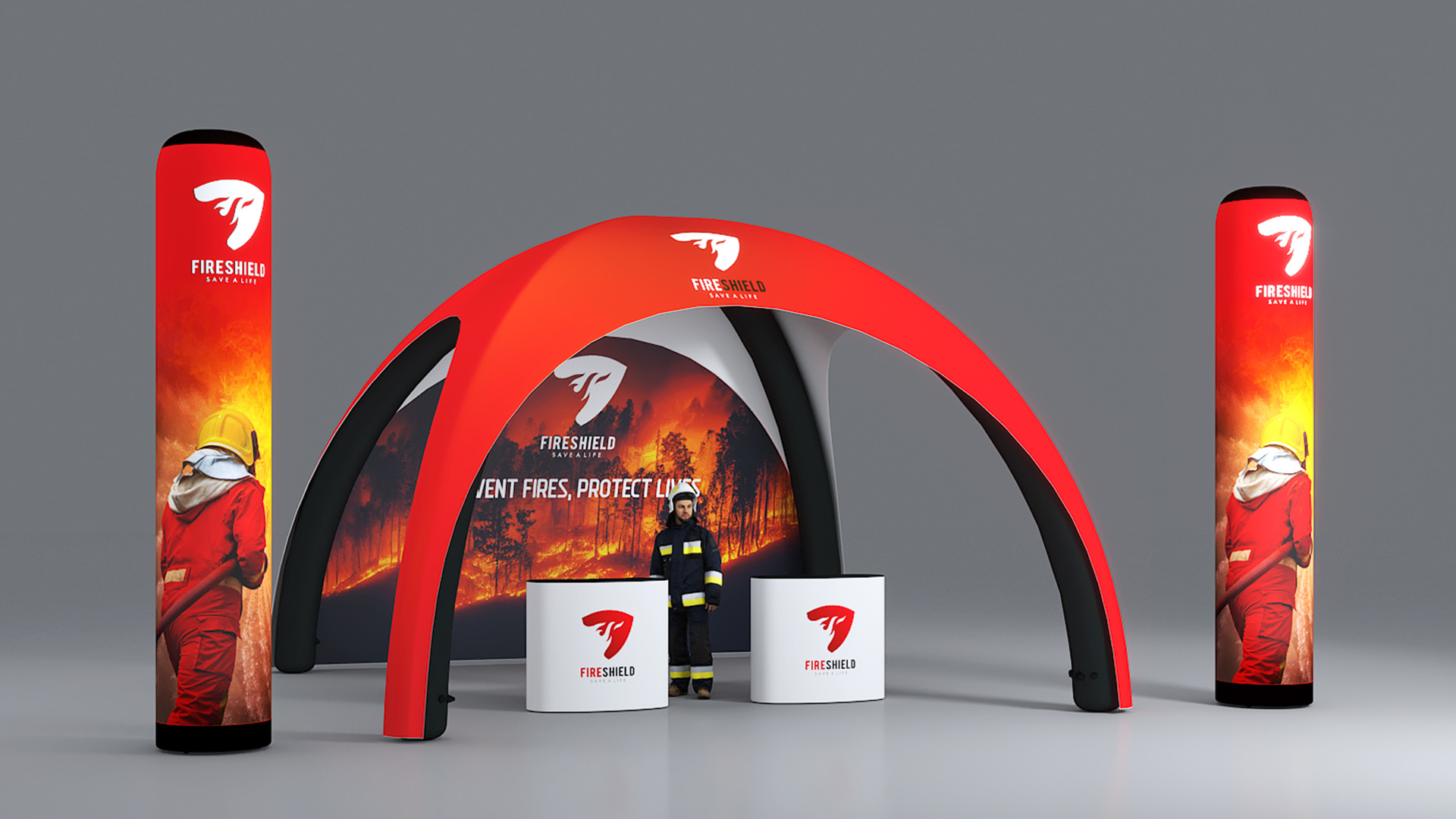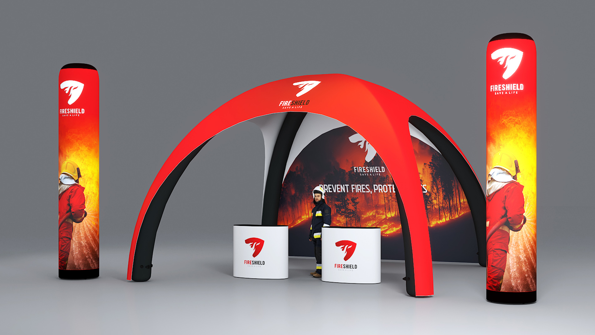 - 1x in3-dop-6x6 Aufblasbare Zeltstruktur 6x6 Meter mit bedrucktem Dach