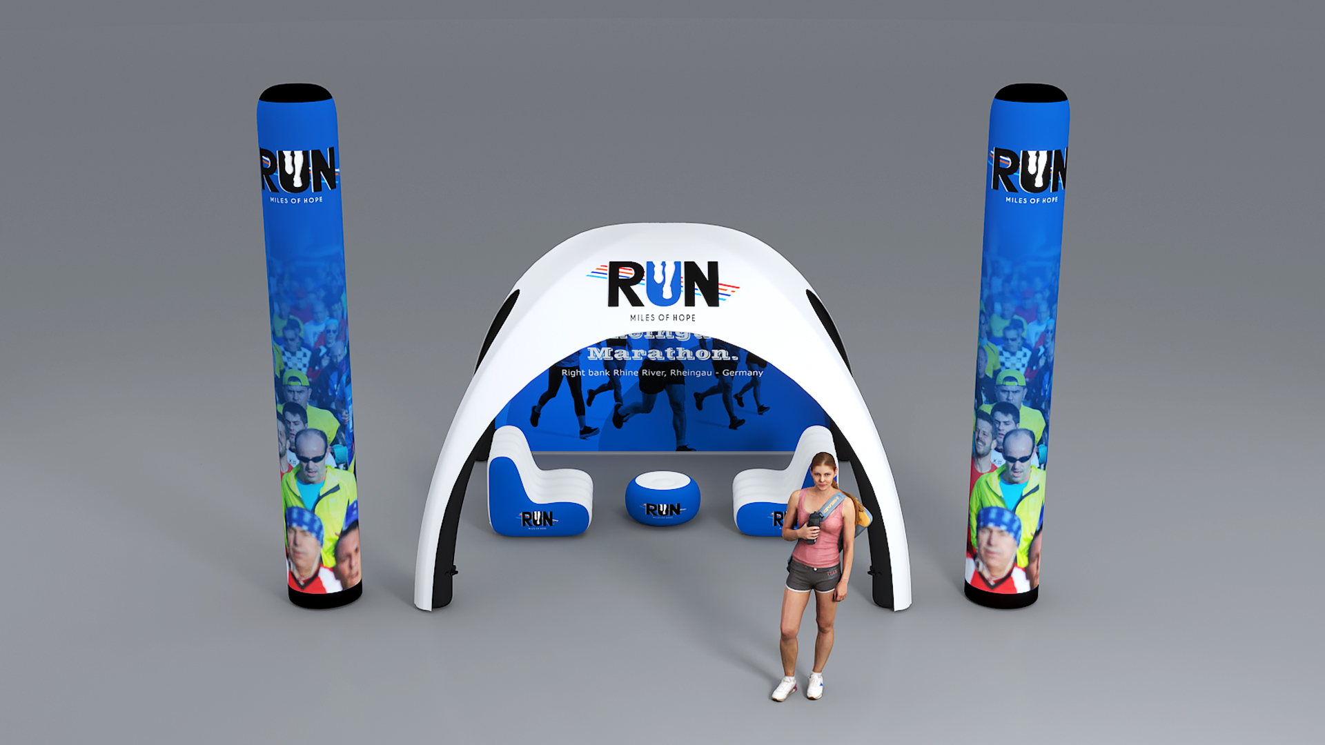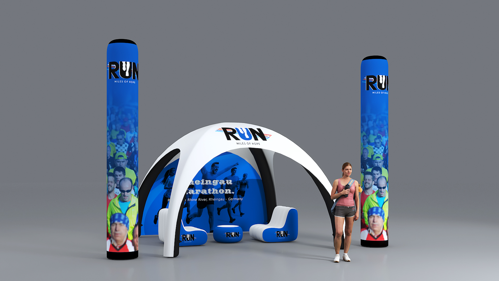 - 1x in3-dop-3x3 Aufblasbare Zeltstruktur 3x3 Meter mit bedrucktem Dach