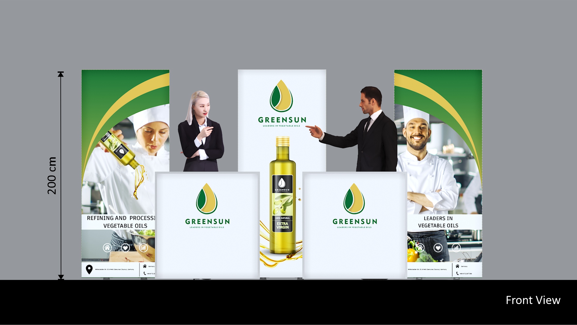 - 2x lb8c-led-1000w LED Theke inkl. weißer Thekenplatte, Ablageboden und Textilgrafik auf Backlit-Stoff