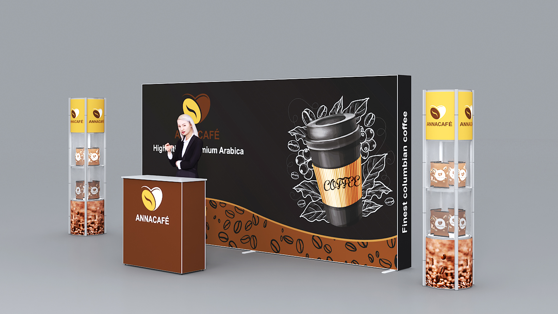- 1x po15c-1040ss-AF seg®Pop Up Theke mit silberner Tischplatte inkl. Rolltasche und Grafik - wähle eine Tischplattenfarbe zwischen silber oder weiß