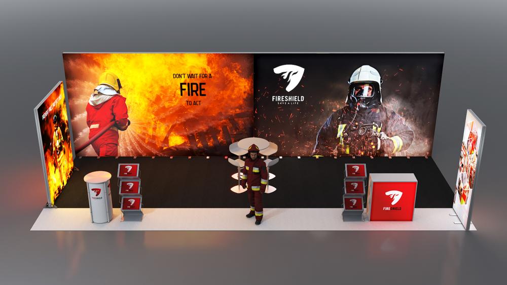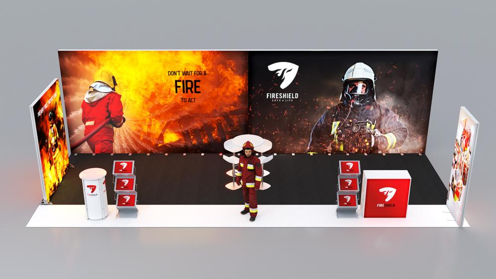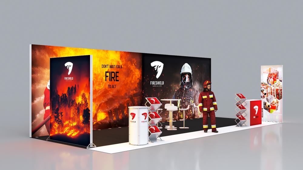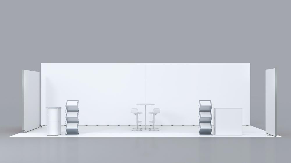 Großer, eindrucksvoll beleuchteter Stand für den perfekten Messeauftritt Ihres Kunden.