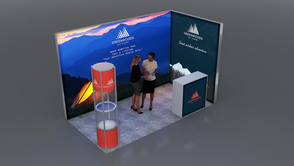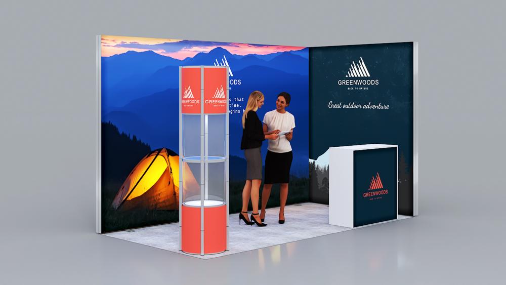 Professionelle, eindrucksvoll hinterleuchtete Messestand-Lösung für den perfekten Werbeauftritt Ihres Kunden.