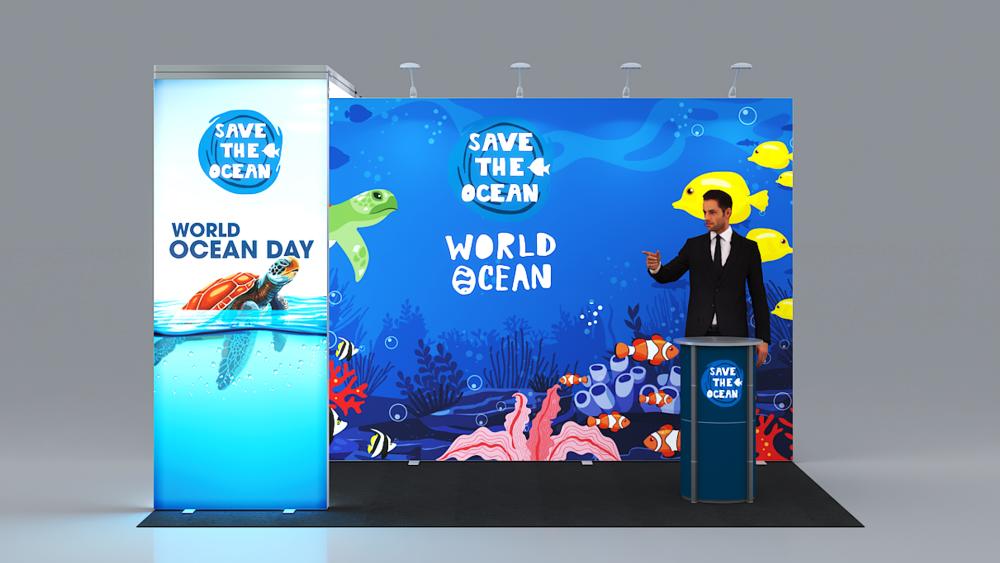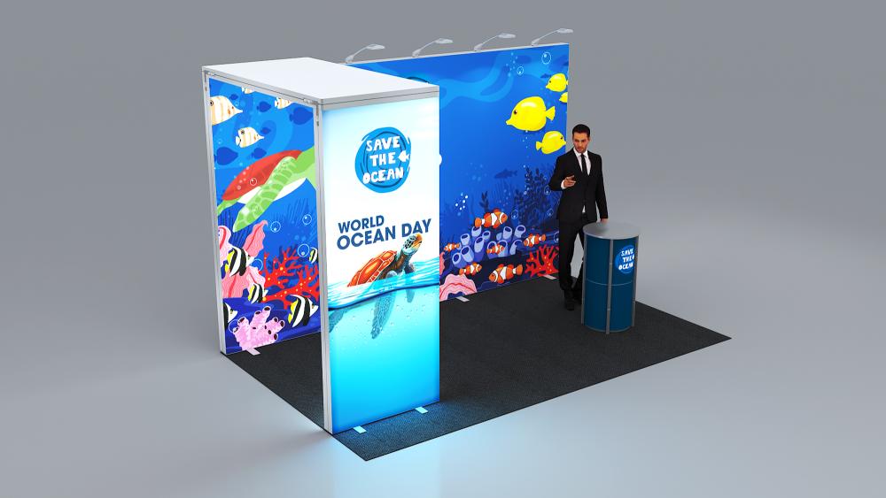 Professionelle, eindrucksvoll hinterleuchtete Messestand-Lösung für den perfekten Werbeauftritt Ihres Kunden.