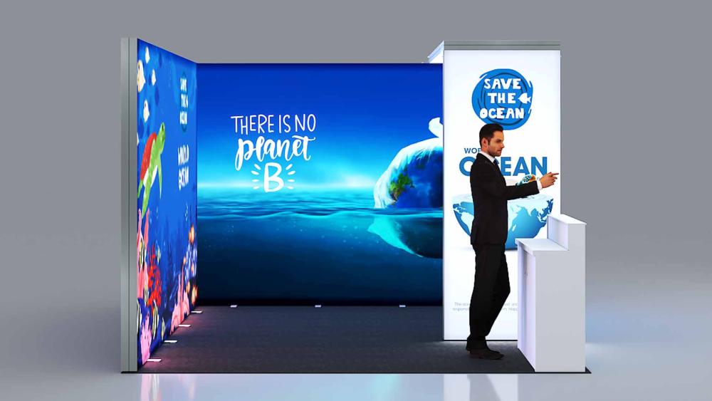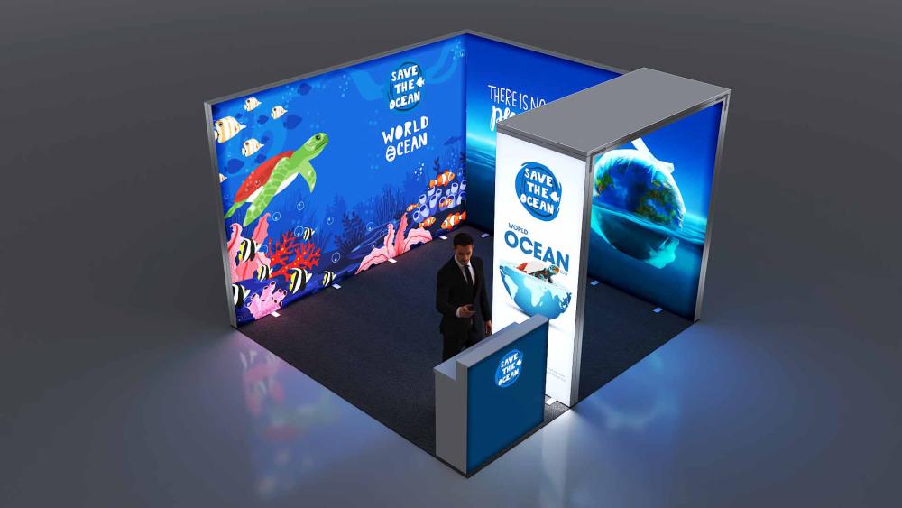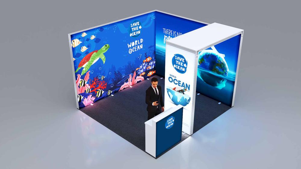 Professionelle, eindrucksvoll hinterleuchtete Messestand-Lösung für den perfekten Werbeauftritt Ihres Kunden.
