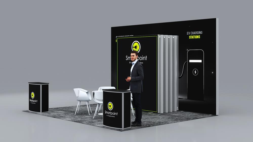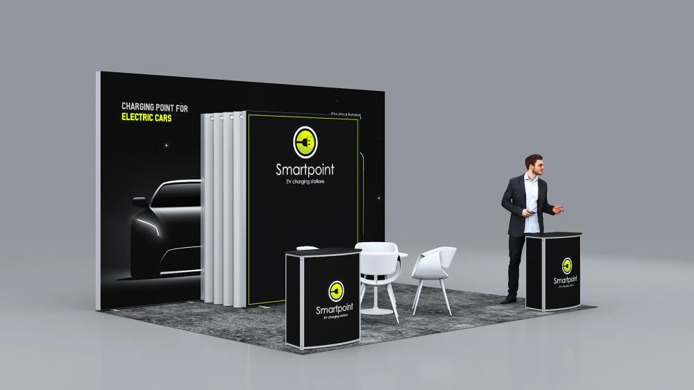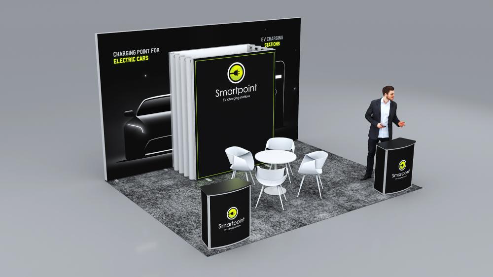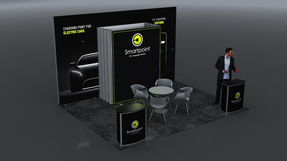 Kompakte, eindrucksvoll beleuchtete Lösung für den perfekten Messestand Ihres Kunden.