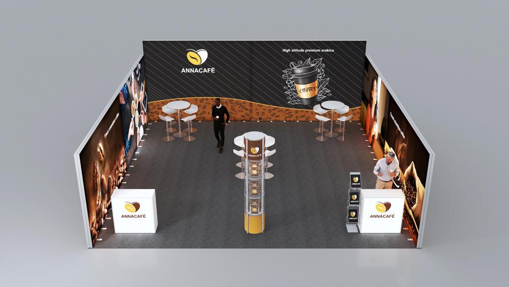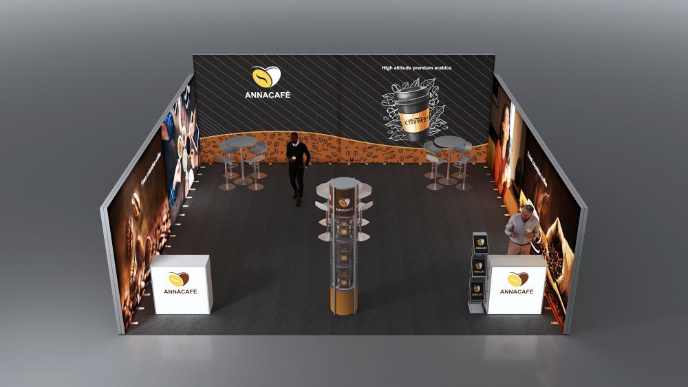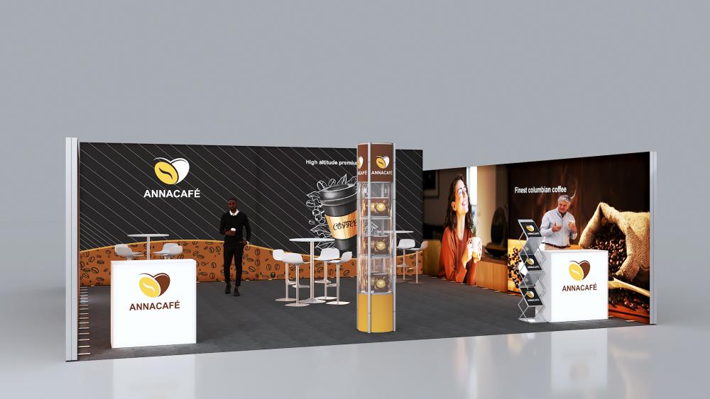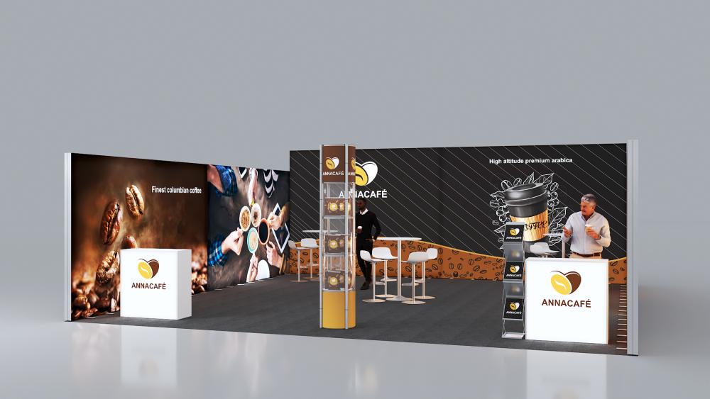 Professionelle, eindrucksvoll hinterleuchtete Messestand-Lösung für den perfekten Werbeauftritt Ihres Kunden.