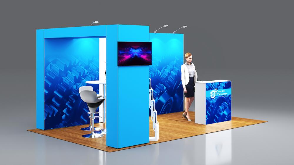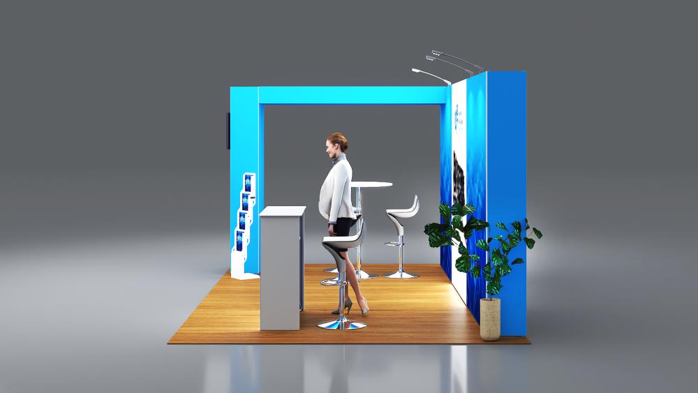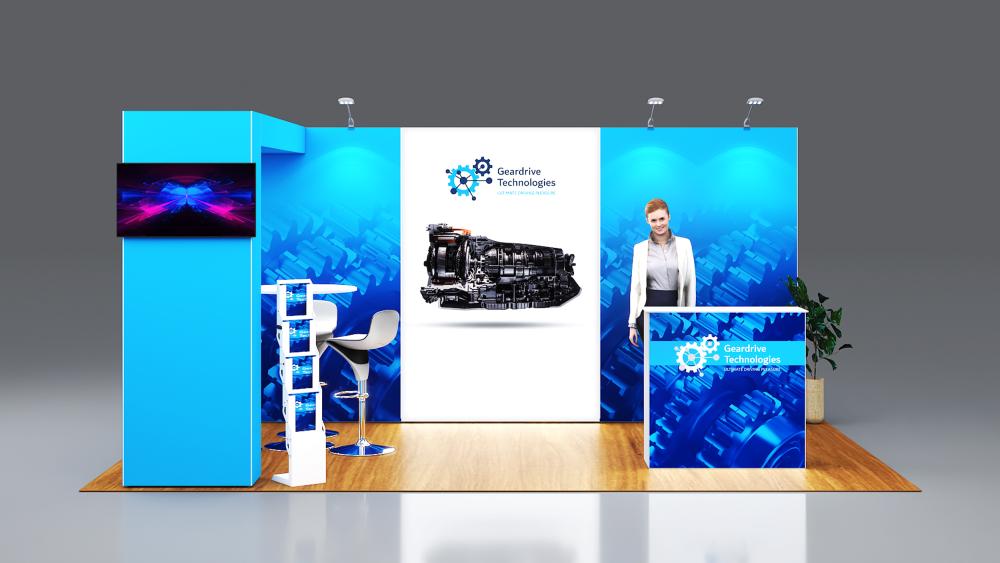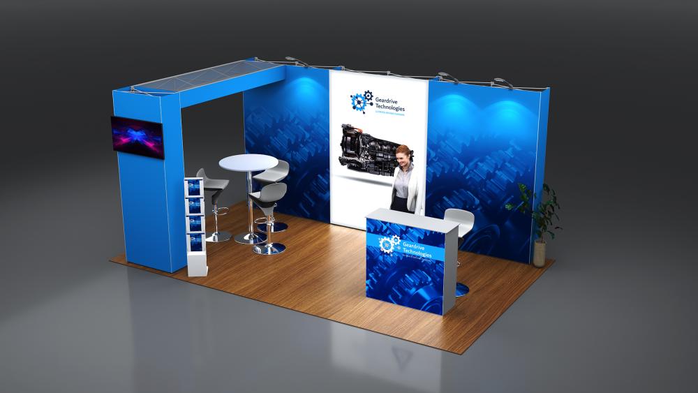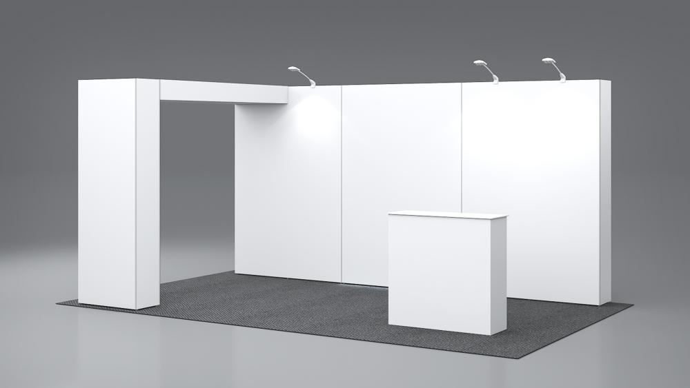 - 1x po15.3c-1040sw seg®LED Theke mit weißer Tischplatte inkl. Rolltasche, Blockout Stoff-Rückwand und Grafik - wähle eine Tischplattenfarbe aus silber oder weiß